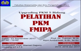 Pendaftaran Untuk Pelatihan PKM 5 Bidang Tanggal 23 September 2017 – 22 september 2017 bertempat di Auditorium Prof. Slamet Dajono D1 Lt3 FMIPA Unesa.Link Pendaftaran : ...
