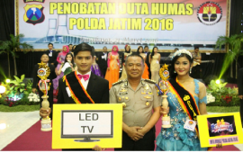 [caption id="attachment_1358" align="alignnone" width="819"] Andri Dwi Julianto, Juara II Duta Humas Polda Jatim 2016 kategori laki-laki (kiri), Kombes Pol Djamal, Ketua Tim Dewan Juri (tengah), Erinda ...