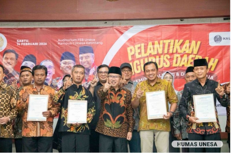 Unesa.ac.id. SURABAYA—Pengurus Pusat Ikatan Keluarga Alumni Universitas Negeri Surabaya (PP IKA Unesa) resmi mengukuhkan Pengurus Daerah IKA Unesa periode 2026–2031 dalam sebuah prosesi khidmat di Auditorium FEB, Kampus I Ketintang, pada Sabtu, 14 Februari 2026.