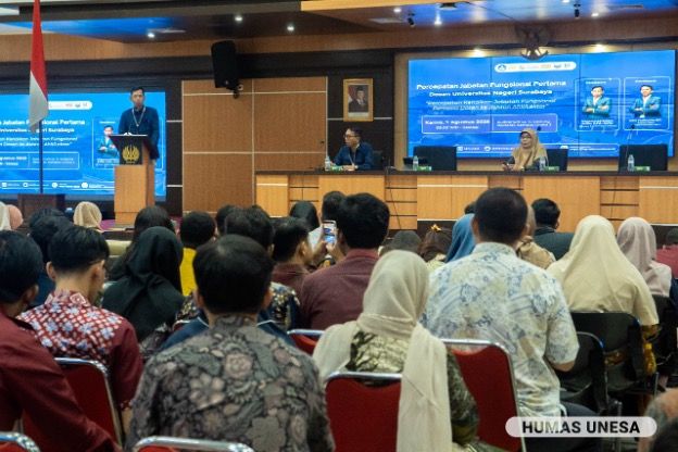 Unesa.ac.id. SURABAYA—Dalam upaya mempercepat pengusulan jabatan fungsional pertama bagi dosen, Direktorat Sumber Daya Manusia (SDM) Universitas Negeri Surabaya (Unesa) menyelenggarakan kegiatan bertajuk “Percepatan Kenaikan Jabatan Fungsional ...
