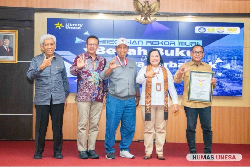 Unesa.ac.id. SURABAYA—Mahasiswa Universitas Negeri Surabaya (Unesa) berhasil mengulas 3.191 judul buku pada Selasa, 9 Desember 2025, sekaligus mencatatkan Rekor MURI (Museum Rekor Dunia Indonesia) untuk kategori ...