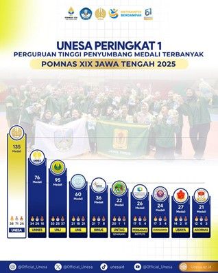 Unesa.ac.id. SURABAYA—Universitas Negeri Surabaya (Unesa) menempati posisi pertama nasional sebagai kampus penyumbang medali terbanyak pada Pekan Olahraga Mahasiswa Nasional (Pomnas) XIX Jawa Tengah 2025. Unesa total ...