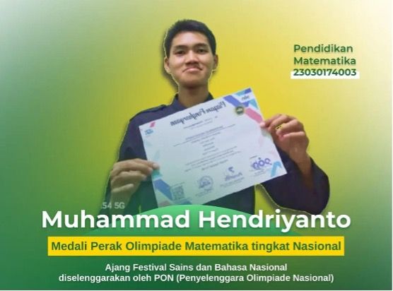 Unesa.ac.id. SURABAYA—Prestasi kembali ditorehkan mahasiswa Universitas Negeri Surabaya (Unesa). Muhammad Hendriyanto, mahasiswa Program Studi Pendidikan Matematika, Fakultas Matematika dan Ilmu Pengetahuan Alam (FMIPA), berhasil meraih medali ...