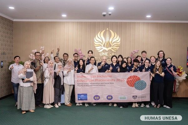 Unesa.ac.id. SURABAYA—Universitas Negeri Surabaya (Unesa) kedatangan delegasi dari University of Sydney, Australia di Rektorat Kampus II Lidah Wetan pada Senin, 2 Februari 2026. Kunjungan rombongan yang terdiri dari 16 mahasiswa, satu dosen, satu profesor, dan satu staf ini merupakan bagian dari program mobilitas yang didanai Pemerintah Australia melalui skema New Colombo Plan.